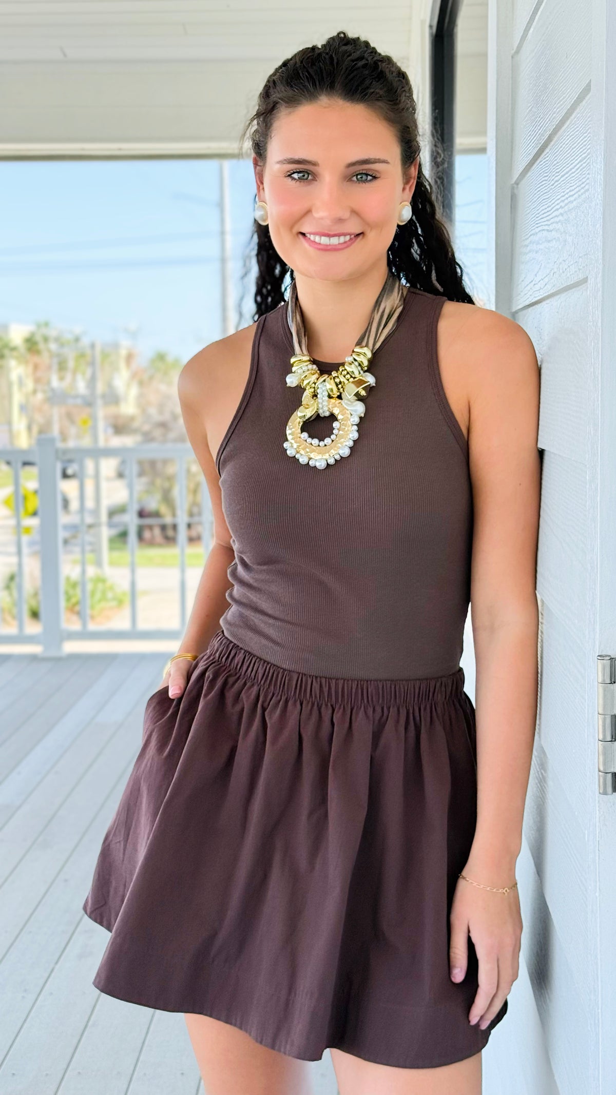 Harbor Muse Ribbed Skirt Set - Chocolate
