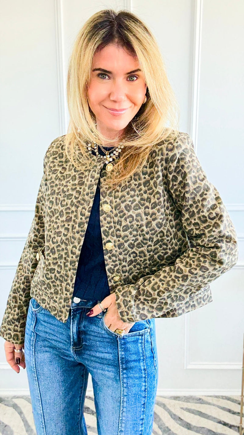 Leopard Printed Cropped Jacket