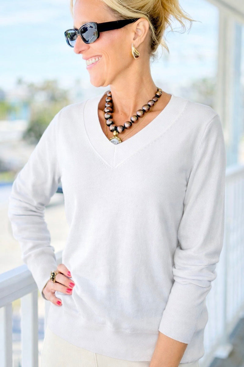 Melissa V Neck Sweater - White