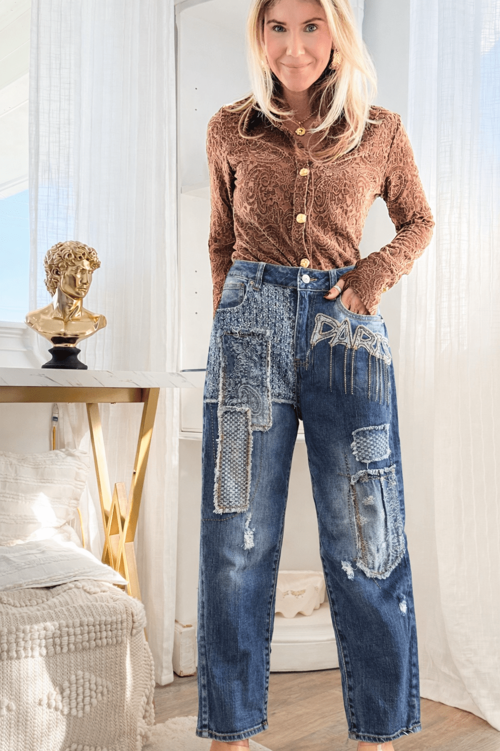 Paris Sparkle Patch Denim Pant