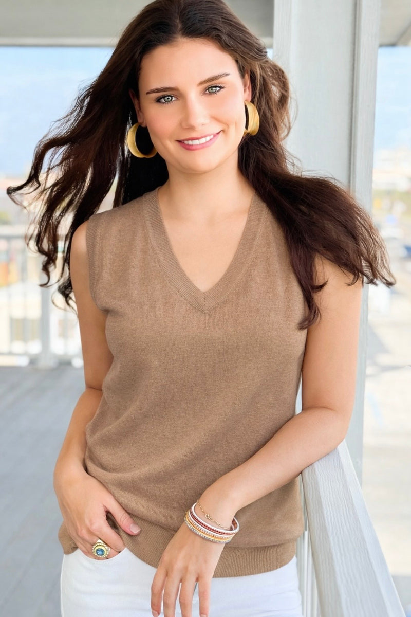 V Neck Sleeveless Sweater - Khaki