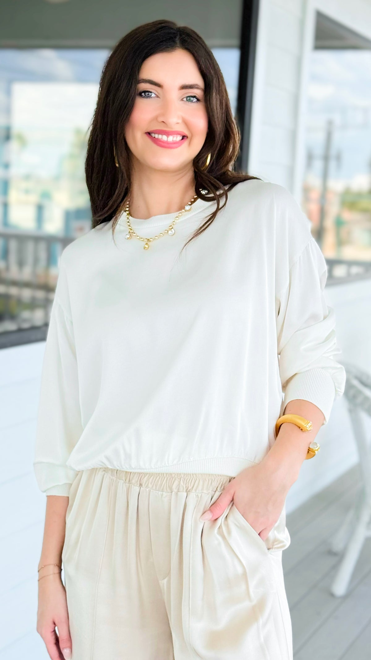 Comfort Silk Touch Italian Long Sleeve Top- Ivory
